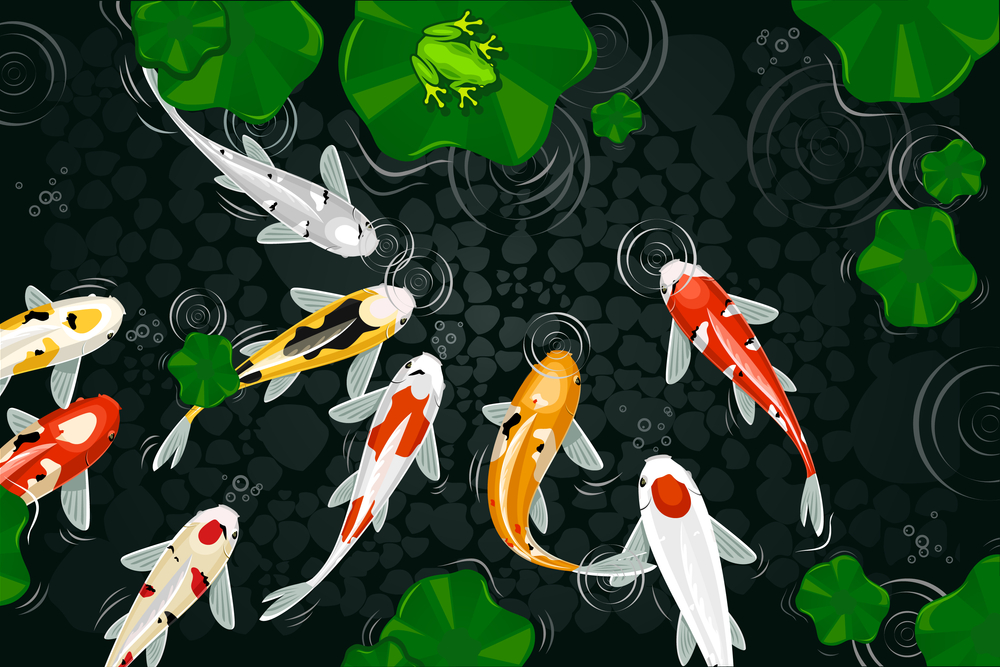 Koi fish that are silver, gold, orange, and red are connected to prosperity and wealth. In Japanese culture, Koi fish go through the difficulty of moving upward and crossing the waterfall to become a dragon. They bring positive energy to the area.